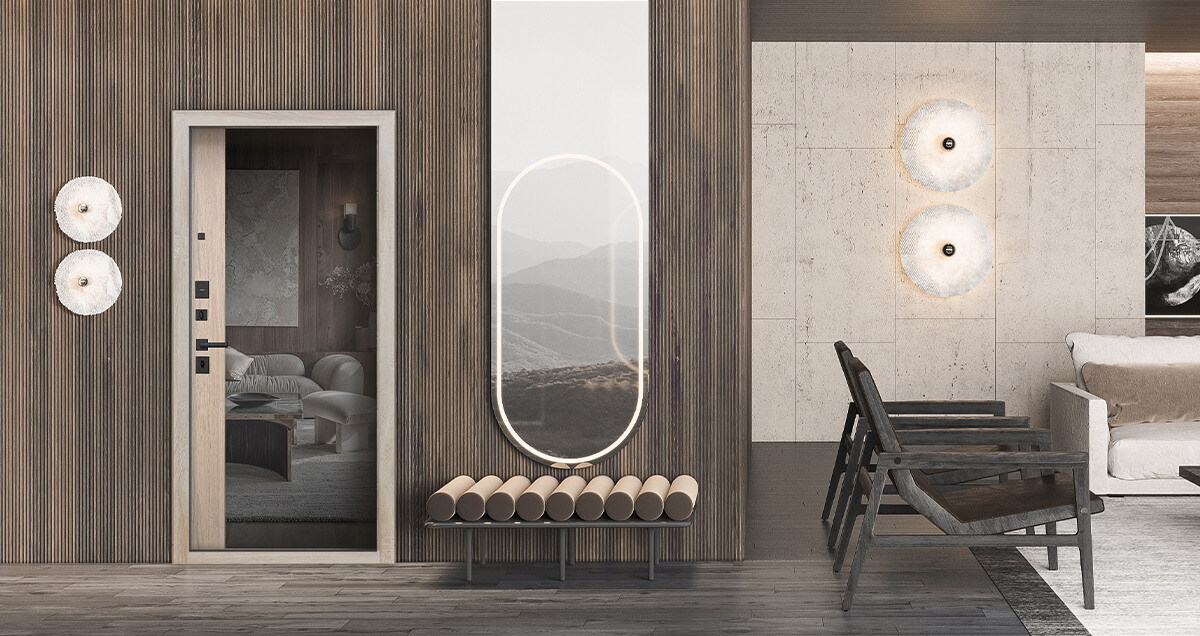 Надёжная входная дверь с зеркалом для квартиры, дома с тёплым тамбуром или офиса: защищает от шума и холода, не боится взлома, устойчива к износу. Элегантный вид внутри и снаружи. Доступна под индивидуальные пожелания. Запишитесь на бесплатный замер уже сегодня!